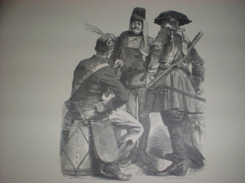 NELLA STAMPA D'EPOCA TRATTA DAL VOLUME "LA LIGURIA" SI VEDONO ALCUNE DELLE UNIFORMI DEI REGGIMENTI IMPERIALI AUSTRIACI CHE OCCUPAVANO GENOVA PRIMA DELLE FAMOSE 6 GIORNATE, SUSSEGUENTI ALL'EPISODIO DI G. B PERASSO (IL BALILLA), CON CUI IL POPOLO DI GENOVA CACCIO' GLI OPPRESSORI