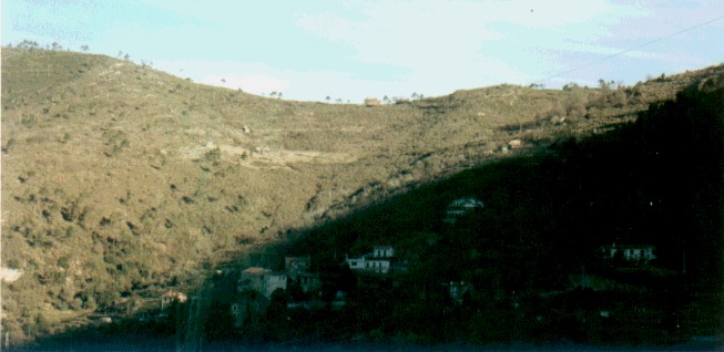 IL COMPLESSO RUSTICO DI NEGI NELL'ALTA VALLE DEL CROSA CON SULLO SFONDO LA CHIESA DI S. BARTOLOMEO: SI VEDA QUI ANCHE UN PARTICOLARE DEL COMPLESSO DEMICO