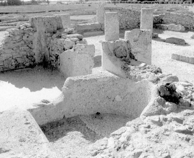 Per i periodi più antichi ha rilevato un 'tempio dagli obelischi', in pietre levigate, e vaste tombe reali scavate sul fondo di grandi pozzi.