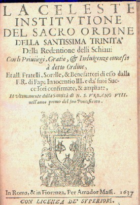 DALLA BIBLIOTECA PRIVATA DURANTE UNO DEI TESTI CHE SI PUBBLICARONO NEL '600 PER CELEBRARE ED ENCOMIARE L'OPERA SOCIALE DELLA CONFRATERNITA DEI TRINITARI PER LA REDENZIONE DEGLI SCHIAVI IMPRIGIONATI DAI MUSULMANI