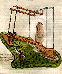 MACCHINE DA GUERRA tratte dal manoscritto (1455) DE RE MILITARI : qui RAFFI A VITE PER EVITARE IL SOLLEVAMENTO DEI PONTI LEVATOI vedi ALTRA IMMAGINE.