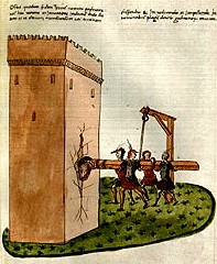 MACCHINE DA GUERRA tratte dal manoscritto (1455) DE RE MILITARI : qui ARIETE A BILANCIERE vedi ALTRA IMMAGINE.