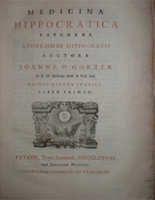 La sua influenza nel mondo cristiano, per quanto mediata dalle acquisizioni di scienziati arabi, fu rilevante: ancora nel XVIII e XIX secolo si pubblicavano in grande quantità, e senza veruna opposizione dalla censura ecclesiastica, gli AFORISMI DI IPPOCRATE ad uso dei medici (in questo caso opera di Joanne de Gorter, Medicina Hippocratica exponens Aphorismos Hippocratis, Padova, per Giovanni Manfré, 1778: opera in Biblioteca Durante - Ventimiglia).