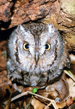 Gli occhi dell'ASSIOLO sono arancioni negli esemplari adulti ed al contrario verde-giallastro nei piccoli.