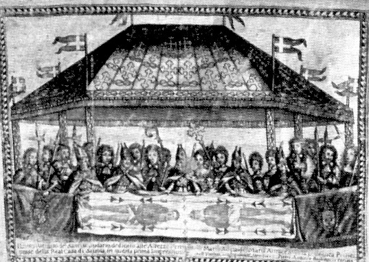 che caratterizzano la misteriosa storia della SACRA SINDONE è il viaggio che essa fece, assieme alla casa regnante sabauda, mentre Torino era assediata nel 1706 durante la GUERRA DI SUCCESSIONE SPAGNOLA. Nel 1785 il teologo don Rosina, Cappellano e Custode della Reliquia, rilasciò questa dichiarazione: "Attesto io sottoscritto avere inteso da re Carlo Emanuele III di gloriosa memoria che nell'anno 1706, minacciata la città di Torino di assedio, si portò esso con la Reale Famiglia a Genova; che in detto tempo seco si recarono la preziosissima Sindone e questa nelle case, ove si fermarono a riposo, collocarono sempre in camera appartata decente con lumi". Dell'argomento si è occupato con perizia L. BAGNARA in un articolo edito sulla "CASANA 1999 - 3, dal titolo "1706: viaggio dei Savoia da Torino a Genova con la Sacra Sindone" (lavoro da cui molti si è tratto per queste considerazioni -con qualche nostra integrazione- anche per la parte iconografica). Lo studio più recente, prima di quello del Bagnara, che riprese l'attestazione del Custode della Sacra Sindone fu quello di Maria Delfina Fusina, "Le peregrinazioni della Sindone durante l'assedio di Torino (1706)" in "Bollettino della Società degli Studi Storici, Archeologici ed Artistici della provincia di Cuneo", n.2, settembre 1972, p.153. Sulle pubbliche ostensioni della SINDONE (famosa quella del1688-1690 [Castello di Racconigi] di cui sopra è riportata la rappresentazione, in incisione ad acquaforte su seta, opera di Pietro Antonio Boglietto) sono comunque basilari i "Cenni sulla Santissima Sindone, sulle principali sue pubbliche ostensioni e su quella che ha luogo addì 4 maggio di quest'anno 1842" opera in cui, a p. 26, è scritto: "...nell'anno 1706, quando il Piemonte invaso dai Francesi, Torino minacciata d'assedio, come poscia lo soffrì lungo e disastroso, fu la Sindone per preservarla dall'eccidio, portata dalla Famiglia Reale in Genova, ov'erasi essa rifugiata, e durante quel viaggio, nelle case in cui la Duchessa coi Principi prendevano riposo, veniva la Sindone collocata sempre in camera coi lumi appartati e decorosi addobbi". Queste notazioni sono importanti perché se da un lato affrontano un episodio non molto noto della storia recente della SINDONE per altro verso, sia dal punto di vista della fede che da quello religioso, interessano notevolemente non solo la SACRA RELIQUIA, Torino donde partì, Genova dove giunse ma, oltre il Basso Piemonte, coinvolgono gran parte del PONENTE LIGURE e precisamente quella parte del PONENTE ormai sotto dominio SABAUDO che corrispondeva al PRINCIPATO DI ONEGLIA territorio attraverso cui passò in pellegrinaggio il REGALE E SACRO CORTEO, pellegrinaggio che vale la pena di PROPORRE IN UN'ANALISI MODERNA anche per l'influenza esercitata dall'evento sulle costumanze religiose della VALLE DI ONEGLIA