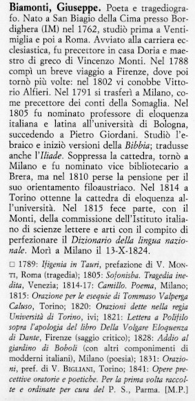 INFORMATIZZAZIONE DA U.T.E.T. - TORINO, "STORIA DELLA CIVILTA' LETTERARIA ITALIANA - DIZIONARIO/CRONOLOGIA", SOTTO VOCE "BIAMONTI GIUSEPPE")