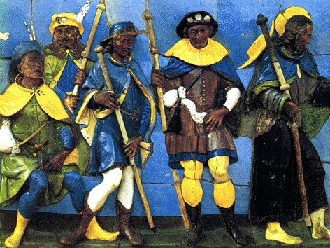 PARTICOLARE CON FREGIO DI TERRACOTTA POLICROMA CON SCENA DI PELLEGRINAGGIO DI GIOVANNI DELLA ROBBA (XVI SECOLO, PISTOIA, PORTICO DELLO SPEDALE DEL CEPPO): RIPR. DI D. GNECH: ARCHIVIO FOTOGRAFICO APROSIANA DI VENTIMIGLIA