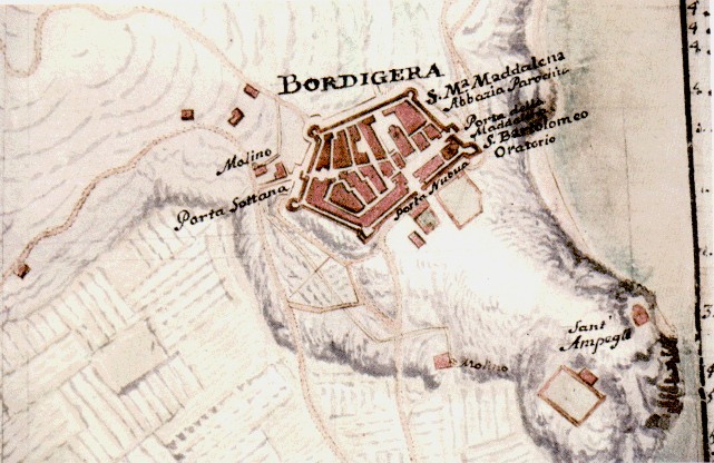 Bordighera a metà 1700 nella Mappa originale disegnata da Matteo Vinzoni e custodita nell'Archivio di Stato di Genova