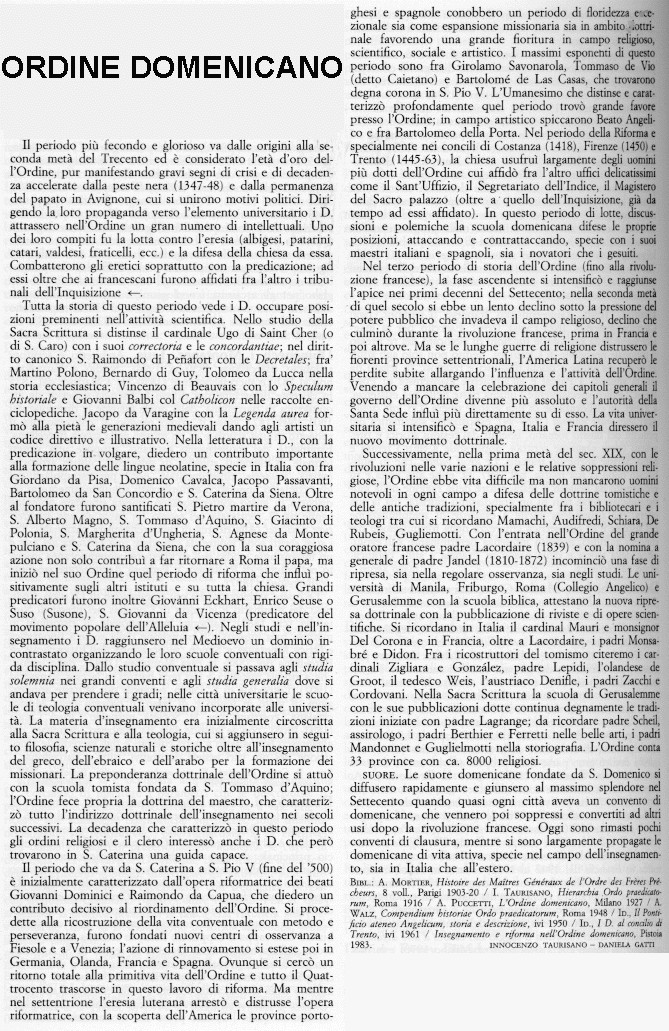 PARTICOLARE DI DISSERTAZIONE SULL'ORDINE DOMENICANO TRATTA DA "FEDELE - GDE" - UTET -TORINO - SOTTO VOCE "DOMENICANI"