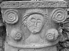 Si tratta di una variazione sul tema del capitello sfero-cubico ligure, in cui la foglia d'acanto stilizzata, arricciata, si riduce ad una prominenza, ad una sorta di nodo: i profili angolari si animano con una voluta a spirale sempre più elaborata e negli spazi centrali trovano posto simboli o figure a rilievo (una specie di giglio oppure un volto umano in versione particolarmente truce con significato apotropaico).