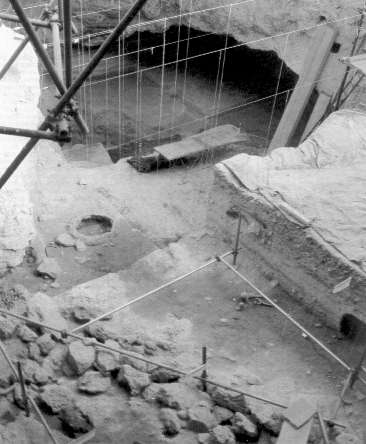 Sul fondo si vede quindi la sala ribassata in cui sono stati rinnvenuti dei CRANI UMANI mentre le OSSA LUNGHE sono state ritrovate presso la fossa-silo.