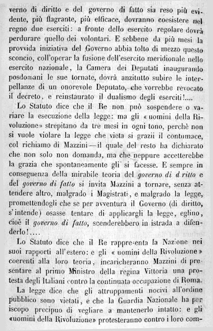 PARAGRAFO VI DALL'OPUSCOLO LA PAURA - CONTINUAZIONE DI GARIBALDI O LA LEGGE? DI PIER CARLO BOGGIO: NATURALMENTE QUI E' REPORTATA L'IDEA CHE I PARLAMENTARI GOVERNATIVI E DELLA DESTRA TORICA DEI LIBERALI AVEVANO NEI CONFRONTI DEI "RIVOLUZIONARI" (TRA CUI ERANO ASCRITTI MAZZINIANI E GARIBALDINI, MA ANCHE ALTRI ESPONENTI DI NUOVE IDEOLOGIE SIA DEL SOCIALISMO SCIENTIFICO CHE DI QUELLO UTOPISTICO: IN SOSTANZA TUTTI I POTENZIALI "REPUBBLICANI")