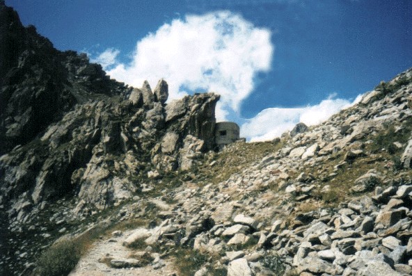 NELL'IMMAGINE SI VEDE L'IMPRESSIONANTE CALATA DI ROCCIA DEL COLLE DELLE FINESTRE DONDE SI PUO' ACCEDERE ALLA VALLE DEL GESSO ENTRANDO COSI' NEL BASSO PIEMONTE
