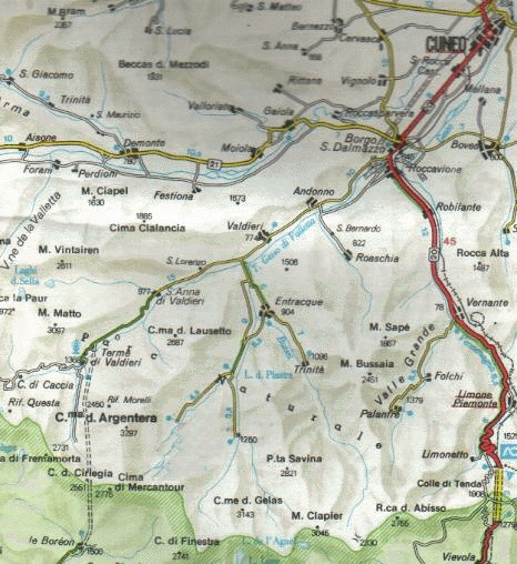 LA MAPPA VIARIA RIPRODUCE LE LINEE VIARIE DI CONTATTO, NELLE ALPI MARITTIME, TRA I TERRITORI DELLA LIGURIA, DEL BASSO PIEMONTE E DELLA FRANCIA, PRIVILEGIANDO DA NORD A SUD L'OSSERVAZIONE DELLA VALLE DEL GESSO