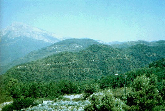 La chiesa di APRICALE di S. PIETRO IN ENTO era una chiesa "extra moenia" cioè fuori delle mura alla maniera consueta per le strutture di tipo monastico (si veda l'analogo caso del CONVENTO DOLCEACQUINO DELLA MUTA. Per S. Pietro come per S.Maria il toponimo popolare sviluppatisi "IL CONVENTO" sembra veicolare un referente concreto, assai più competente di un nome di santo, il "CONVENTO" come la "CASA DEI FRATI". S. MARIA è pure identificata come S.MARIA DELL?ULIVETO sorgendo quasi al centro di un tale tipo di coltura tipicamente benedettina. S. PIETRO come si vede dall'immagine quasi si perdeva invece all'INTERNO di un bosco di castagni: alla maniera monastica si potrebbe spiecare la specificazione "IN ENTO" o "DE ENTO" come "IL CONVENTO CHE STA DENTRO IL BOSCO". Cosa peraltro non insolita visto che per la coeva S. MARIA ASSUNTA DI CASTELVITTORIO, sita al centro di uno storico NOCETO, l'etimologia popolare ha coniato il toponimo qualificante "DE NOGARETO" trasposizione da un latino grasso che sta per indicare la "CHIESA SITA ALL'INTERNO DEL NOCETO" (anch'essa, ben si intende, al pari delle consorelle "CHIESA EXTRA MOENIA").