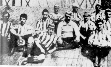 Nell'immagine si vede un gruppo di atleti della formazione del "Genoa Cricket and Foot-ball Club" che vinse il campionato di calcio italiano del 1899: l'8 maggio dell'anno precedente i genoani hanno già conquistato il primo scudetto battendo, in una sola giornata di gare, l'Internazionale di Torino, il F.C. Torinese e la Società Ginnastica Torinese.