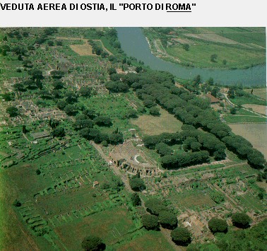 Il grande porto militare e commerciale di OSTIA (da ostium - porta - per indicare la foce del Tevere), la cui fortuna fu intimamente legata al destino di Roma.