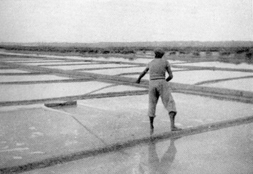Prima di potersi procedere alla vera e propria ESTRAZIONE DEL SALE è necessario che si controlli con cura lo stato delle VASCHE onde l'acqua non ristagni ma rimanga VIVA: per questo i SLINARI con lunghe spatole debbono tenere increspate le acque delle VASCHE.