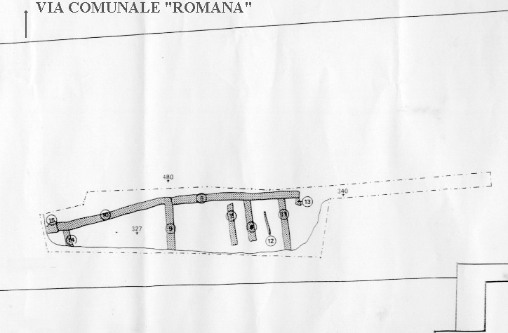 NELL'IMMAGINE SOPRA RIPRODOTTA SI VEDE LO SCHEMA DI UNA PRESUMIBILE VILLA RUSTICA O PSEUDORBANA RECENTEMENTE INDIVIDUATA DAGLI ARCHEOLOGI NELL'AREA DELLA FRAZIONE LATTE DI VENTIMIGLIA. RIPRODUZIONE DA ESEMPLARE DI BIBLIOTECA PRIVATA DI VENTIMIGLIA