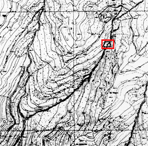 CARTA FOTOGRAMMETRICA SCALA 1: 10.000: IL TRAPEZIO, CIRCONDATO DALLA CORNICE ROSSA ATTIVA, INDICA L'UBICAZIONE DELLE 2 GALLERIE DELLE MINIERE DI GALENA ARGENTIFERA