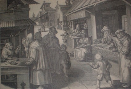 Per molto tempo gli occhiali non furono prescritti e realizzati caso per caso ma preparati in pochi tipi fissi e scelti poi dai pazienti fra quelli disponibili: una scena al riguardo è quella che ci viene proposta dall'incisione cinquecentesca in cui compaiono dei venditori ambulanti nell'atto di far provare gli occhiali ai loro clienti sì che ne potessero acquistare il tipo più adatto a correggere il loro deficit visivo.