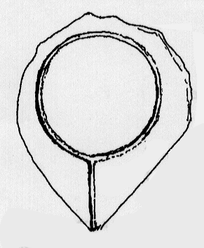 LA PIETRA (IL CUI DISEGNO QUI E' RIPRODOTTO DAL SAGGIO CITATO DA "INTEMELION", 1999, 5, P. 153:LE "PIETRE OLEARIE" DI PIGNA) E' DI FORMA OBLUNGA E PIATTA, CON SCANNELLATURA CIRCOLARE TERMINANTE CON UN BECCO A GUISA DI PUNTA TRIANGOLARE: HA LE DIMENSIONI DI CM. 86 X 73 CM., CON UNO SPESSORE MEDIO OSCILLANTE FRA I 5 E I 6 CENTIMETRI: LA SCANNELLATURA CIRCOLARE PRESENTA UN DIAMETRO DI M. 0,49, 2 CM. DI LARGHEZZA ED 1 CM. DI PROFONDITA'). SECONDO L'AUTORE DEL SAGGIO (P.152) LA PIETRA ERA SEMINTERRATA IN UNA FASCIA PROSSIMA ALL'ABITAZIONE: IN SEGUITO ALLA PULITURA DI SIFFATTA FASCIA è STATA RIPORATO ALLA LUCE, SOTTO QUASI 20 CM. DI TERRICCIO ED HUMUS, UN PAVIMENTO IN PIETRA, PER UNA SUPERFICIE DI CIRCA METRI 3, 50 X 2,50. nEL URO A SECCO SOPRASTANTE LA FASCIA (ALTEZZA DI CIRCA 1 METRO E 30 CM.) IN UN'EPOCA DIFFICILE DA DETERMINARE FURONO REALIZZATE DUE NICCHIE, VERISIMILMENTE PER REGOLARIZZARE IL MURO CONTRO QUALCHE PERICOLO DI CEDIMENTO STRUTTURALE. LE NICCHIE DISTANO TRA LORO PRESSAPOCO 50 CM. ED IN ORIGINE DOVEVANO AVERE UNA FORMA ARROTONDATA: LA PIU' GRANDE E MEGLIO LEGGIBILE CRITICAMENTE HA LE MISURE DI 85 CM. X 65 DI PROFONDITa' ED ALLA BASE VI SI NOTA UNA LASTRA RETTANGOLARE CHE AL CENTRO, FORSE PER LA LUNGA PRESSIONE DI UN PESO, APPARE SCHIACCIATA (NULLA TUTTAVIA, A GIUDIZIO DELL'ESTENSORE DEL SAGGIO, PERMETTEREBBE DI COLLEGARE LE NICCHIE CON LA PIETRA A BECCO TROVATA NELLE VICINANZE)