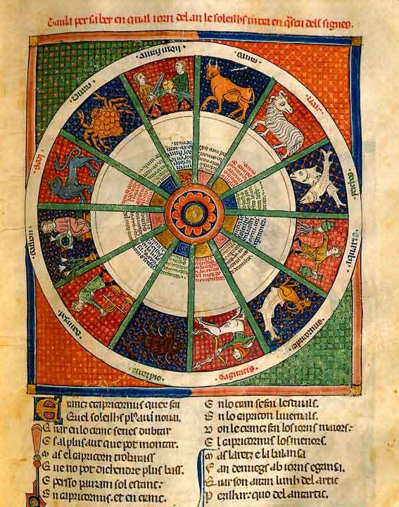 I segni dello ZODIACO risalgono alle prime culture mesopotamiche; qui sono rappresentati in un codice provenzale del sec. XIII-XIV.