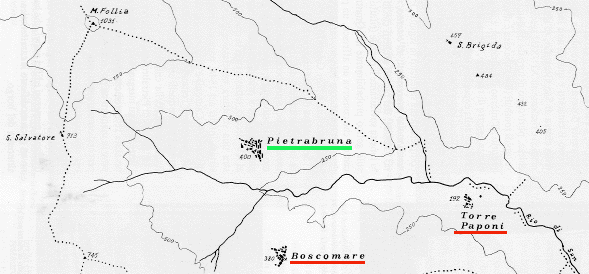 Il TERRITORIO COMUNALE di PIETRABRUNA copre una superficie di 995 ettari coinvolgendo gran parte del bacino idrografico del rio SAN LORENZO. PIETRABRUNA è la frazione sede della CASA COMUNALE ma un ruolo importante, a fianco del CAPOLUOGO, hanno anche le FRAZIONI di BOSCOMARE e TORRE PAPONI