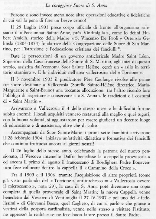 ISTITUTO DI S. ANNA - PRIMI DEL '900 - IMMAGINE E TESTO TRATTI DA "VALLECROSIA..."