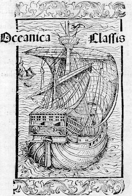 Nell'immagine si vede un disegno dell'ammiraglia di C. Colombo la caravella SANTA MARIA: xilografia tratta da Lettera di Colombo, Basilea, 1494, Parigi, Bibliothèque Nationale