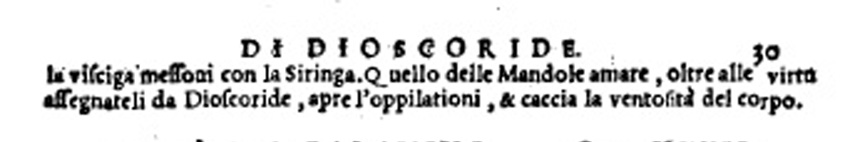 Testo di riferimento = Il Dioscoride dell'eccellente Dottor Medico M. P. Andrea Matthioli da Siena, co i suoi discorsi da esso la seconda volta illustrati e