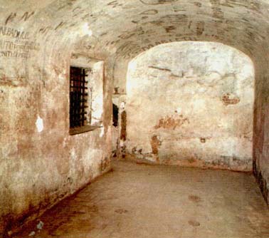 UNA CELLA DEL PALAZZO DUCALE DI GENOVA: NEL 1833 IN UNA DI QUESTE DOVE SI SONO SUCCEDUTI GENERAZIONI DI IMPRIGIONATI SI SUICIDO' JACOPO RUFFINI IL FRATELLO DI GIOVANNI RUFFINI PROBABILMENTE PER NON CONFESSARE SOTTO TORTURA IL NOME DI ALTRI AFFILIATI ALLA "GIOVINE ITALIA"