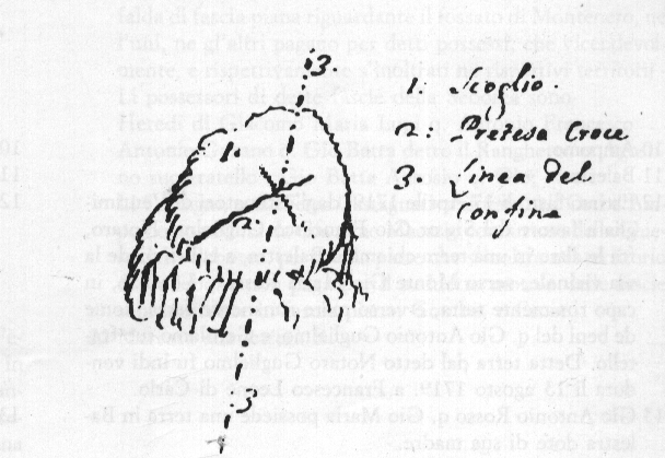 Questa CROCE CONFINARIA, indubbiamente analoga a quelle menzionate dal Foscolo, fu disegnata dal genovese Cartografo di Guerra Matteo Vinzoni ad integrazione di questa CARTA da lui redatta in merito ad un altro contenzioso sorto fra VALLEBONA villa degli "OTTO LUOGHI" e la vicina SEBORGA = l'intiera relazione è in B. Durante - F. Poggi, Diplomazia e Cartografia, Materiale inedito dell'archivio "vinzoniano" sulle vertenze confinarie e giurisdizionali tra il Principato di Seborga, Vallebona e Sanremo, in "Rivista Ingauna e Intemelia", N. S., XXXIX, n. 3 - 4 (1986)