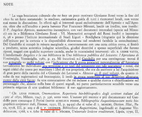 il Gandolfo è stato poi inserito (ed accostato a Aprosio) nell'ultimo intervento critico moderno di vasta portata che ci è noto vale a dire