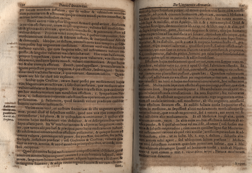 NELL'IMMAGINE SOPRA PROPOSTA SI VEDE L'INCIPIT DELL'OPERA (CONTENUTA NEL CORPUS DEL TEATRO SIMPATETICO [PP.585-598]) DELL'ARCHIATRA DANIEL SENNERTUS.