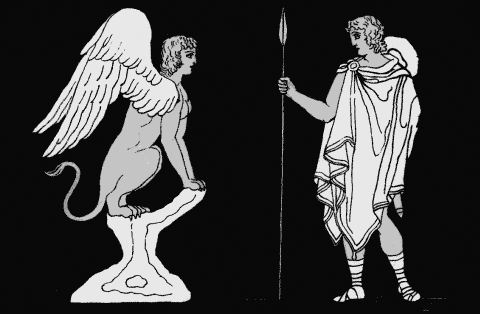 [L'IMMAGINE = Edipo e la Sfinge, = E' TRATTA DA da un'illustrazione del 1879 da Stories from the Greek Tragedians di Alfred Church] [Fonte "Wikipedia" - enciclopedia on line]