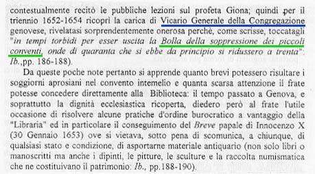 Instaurandae regularis disciplinae, il problema dei "piccoli e poveri conventi" sia stato definitivamente risolto: ma la cosa non è così semplice e, implicitamente nel suo inciso, lo stesso Aprosio denunciò la complessita del problema parlando affatto a caso di tempi torbidi.