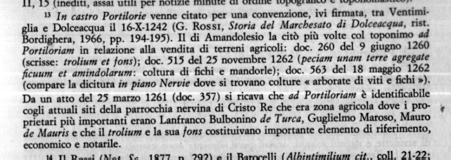 "1242 Data 16 ottobre, il documento che segnalava la presenza del castello di Portiloria, in Nervia". CLICCA SULLE FRECCE PER RITORNARE ALLA VOCE PERTINENTE IL "CASTELLO DI PORTILORIA" A NERVIA