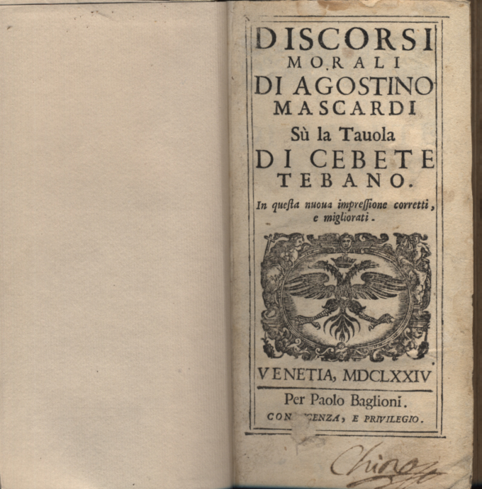 DAI DISCORSI MORALI DI AGOSTINO MASCARDI SULLA TAVOLA DI CEBETE TEBANO