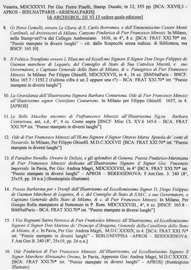 IL PREZIOSO ELENCO E' ANCORA DOVUTO ALLA CORTESIA DEL SIGNOR RENATO GIULIETTI RESPONSABILE DEL SETTORE CULTURA DEL COMUNE DI MONTE SAN SAVINO (PROVINCIA DI SIENA) CHE HA DOVEROSAMENTE USATO LE SIGLE DELLE BIBLIOTECHE IN CUI HA INDIVIDUATO LE OPERE DEL MINOZZI