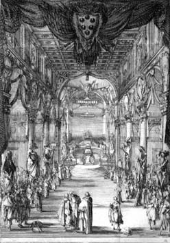 Alfonso Parigi (m. 1656), architetto e ingegnere di corte, ideò il catafalco e le decorazioni sia all’interno che all’esterno della chiesa. Il tema dominante è quello del potere della morte e il punto forte della decorazione sono i motivi scultorei lungo la navata, più ricchi e suggestivi che in qualsiasi altra decorazione funerale precedente. Ogni colonna sostiene un gigantesco scheletro in uniforme militare, mentre due scheletri in armatura siedono su due cavalli statuari a guardia della salma (cfr. A.R. Blumenthal, Theater Art of the Medici, Hanover, N.H., 1980, p. 153).