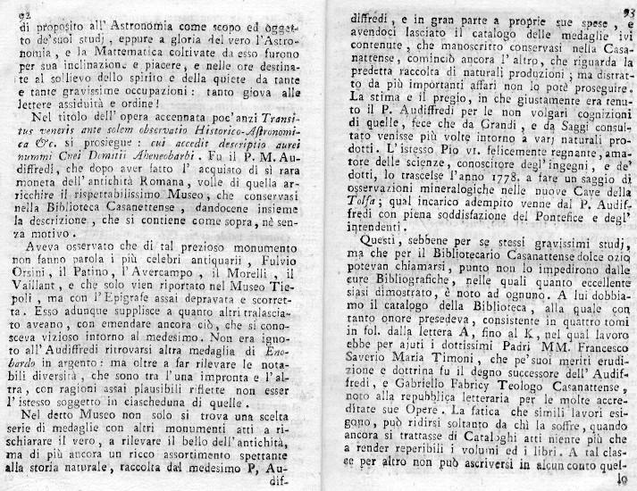 DA RIVISTA SETTECENTESCA DI NOTIZIE LETTERARIE (ESTRATTO IN BIBLIOTECA DURANTE): CLICCA QUI PER VOLTARE PAGINA