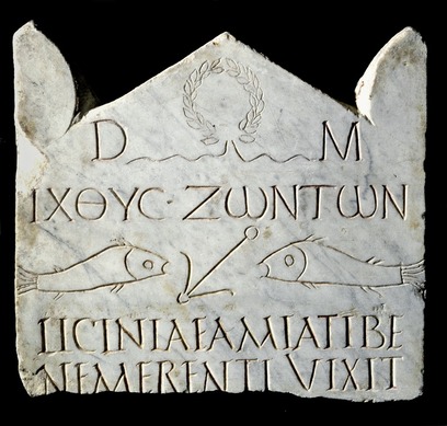 Per Tertulliano (morto nel 230) i credenti erano "pisciculi": per essere salvati occorreva restare nell’acqua del Battesimo. Scrivendo in latino egli riporta il nome greco del pesce – "ichtys" – che era già utilizzato come acrostico della confessione cristologica associata al nome di Gesù: "Iesoùs Christòs Theoù Yiòs Sotèr (traslitterato in caratteri latini), che tradotto significa: "Gesù Cristo Figlio di Dio Salvatore". Questo acrostico si trova già nell’epigrafe di Abercio, vescovo di Gerapoli (morto nel 167), ed è ricorrente nelle catacombe cristiane, assieme all’immagine del pesce, come simbolo cristologico".