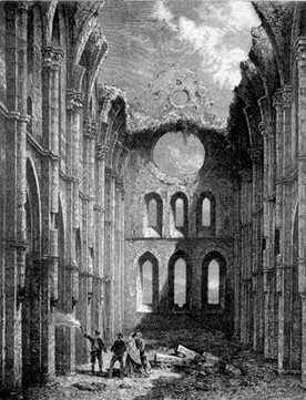 Inf. Durante L'Abbazia di San Galgano sorge presso Chiusdino: si narra che nel 1180 lì si fermò il CAVALIERE GALGANO dopo aver infisso la propria SPADA nelle fenditure di un masso a guisa di simbolo della croce, avendo scelto di vivervi da eremita. Galgano visse in quel romitorio per un anno e vi morì il 3 dicembre del 1181 all'età di 33 anni. Venne trovato morto da Ugo dei Saladini, vescovo di Volterra, e dal vescovo di Massa Marittima che gli diedero sepoltura assistiti da tre abati cistercensi i quali, di ritorno dal Capitolo generale del loro Ordine tenutosi in Francia e diretti a Roma, si erano smarriti per via ritrovandosi sul Monte Siepi. Il Vescovo di Volterra promosse ben presto l'edificazione di una Cappella di forma circolare, che ancora esiste. e di un cenobio per alcuni monaci cistercensi dotandolo di tutte le pertinenze tramite l'acquisto dei terreni di Monte Siepi o Cerboli. Nel 1185 Galgano venne canonizzato per opera del pontefice Lucio III; secondo altre versioni la canonizzazione avvenne nel 1186 per opera del pontefice Urbano III: vedi qui la DOCUMENTAZIONE REPERITA. Poi un monaco francese, di nume Buono, fu l'Abate dei primi cistercensi che si stabilirono sul Monte Siepi. Nel XIII secolo la comunità monastica era numerosa e a quel tempo presero l'abito anche molti nobili e fra questi alcuni appartenti ale famiglie dei conti Guidi, degli Ardenghi, dei Visconti, dei d'Elci, dei Bandini, degli Aldobrandeschi. Le donazioni che pervennero in quegli anni consentirono ai cistercensi di iniziare la costruzione della grande Abbazia di San Galgano nel piano della Merse, di cui oggi si ammirano le maestose rovine. Fin dall'origine l'Abbazia godette di molti privilegi ed immunità ne ricordiamo alcune più significative: Nel 1191 l'Imperatore Enrico VI li prese sotto la sua protezione accordando loro l'immunità - Ottone IV Imperatore confermò nell'anno 1209 tutte le immunità che avevano già attenute e gli accordò di ricevere prout sua ogni persona ed isuoi beni, dando anche faccoltà ai monaci di poter nominare un loro sindaco o procuratore nelle cause forensi - Nel 1223 Federico II Imperatore, confermò al monastero le concessioni fattegli da Enrico VI, ponendolo sotto la sua protezione - Innocenzo III nel 1206 esonera il monastero dal pagamento delle decime accordandogli anche altri privilegi ed immunità - Alcuni sostengono che Federico Imperatore avesse accordato all'Abbazia anche il privilegio di battere moneta. Tale supposizione è in parte motivata dall'esistenza di qurteruoli false (monete d'ottone e di rame utilizzati per fare i conti) appartenuti all'Abbazia e portanti da un lato la spada infitta nel trimonte (stemma dell'Abbazia) dall'altra una mano che tiene un pastorale - bibliografia: Arch. Antonio Canestrelli, L'Abbazia di San Galgano, monografia storico artistica con documenti inediti e innumerose illustrazioni , Pistoia, Tellini Editore, MCMLXXXIX.