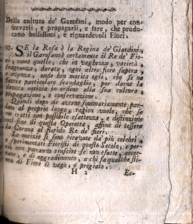 il garofano re dei fiori quanto la rosa č la regina dei giardini dal CAPITOLO DEDICATO ALLA COLTURA DEI GAROFANI nel settecentesca opera Il semplice ortolano in villa, e l'accurato giardiniere in cittąscritta dadi Casimiro Affaitadi)
