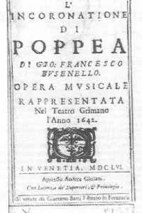 L'incoronazione di Poppea (in realtà il titolo originale è La coronatione di Poppea) è l'ultimo straordinario capolavoro composto da Monteverdi per il teatro. L'opera fu composta nel 1642 e rappresentata a Venezia nella stagione di carnevale del 1643 al teatro di SS. Giovanni e Paolo; la stagione di carnevale iniziava negli ultimi giorni di dicembre dell'anno precedente, ed è questa la ragione per cui la data tradizionale riportata nei dizionari e nelle numerose biografie monteverdiane è 1642. In occasione della prima rappresentazione non fu stampato il libretto, ma solo lo scenario, datato 1643, col seguente titolo: Scenario dell'opera reggia intitolata La coronatione dì Poppea che si rappresenta in musica nel teatro dell'illustrissimo Sig. Giovanni Grimani. Il testo dell'opera, realizzato dall'avvocato veneziano Giovanni Francesco Busenello, fu pubblicato solo nel 1656 nel volume miscellaneo Le ore ociose.