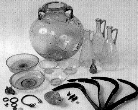 Nell'IMMAGINE si vede il ricco CORREDO FUNEBRE di una tomba che si rinvenne ad ACQUI TERME nel 1973: l'oggettistica attesta una buona condizione economica della persona sepolta.