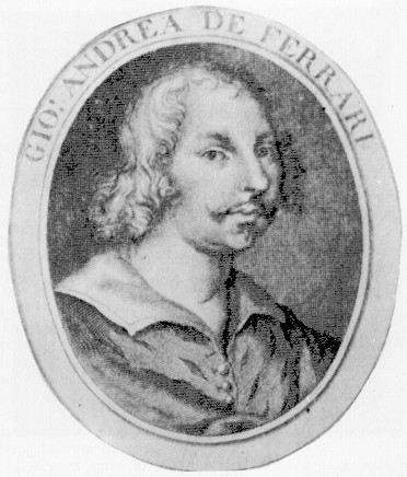 Il pittore genovese GIOVANNI ANDREA DE' FERRARI (1598 - 1669) in un'incisione tratta dal volume di Raffaele Soprani, Le vite de' pittori, scoltori ed architetti genovesi edito a Genova nel 1674 ad opera di Bottaro e Tiboldi.