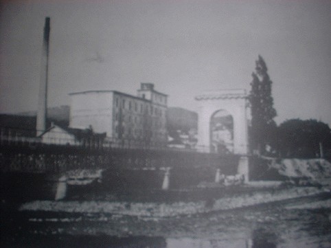 L'IMMAGINE RISALE AGLI ULTIMI ANNI DEL XIX SECOLO E PERMETTE DI VISUALIZZARE IL PONTE IN FERRO CHE NEL 1888 SOSTITUI' IL VECCHIO E MALANDATO PONTE SOSPESO IN LEGNO: DELL' ANTICA E FAMOSA STRUTTURA VENNERO CONSERVATI SOLTANTO I DUE ARCHI DESTINATI PERO' A VENIR DEMOLITI NEL 1905 (DA REPERTORIO DI IMMAGINI D'EPOCA DI RACCOLTA DE APOLLONIA - VENTIMIGLIA)