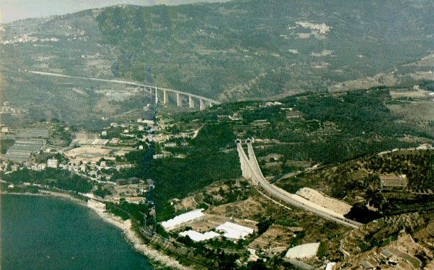 Nella foto aerea si vedono in primo piano S. LORENZO AL MARE , a sinistra di chi guarda il paese di CIPRESSA e in linea settentrionale con S.Lorenzo il borgo medievale di LINGUEGLIETTA